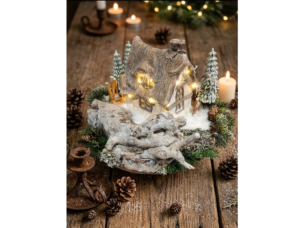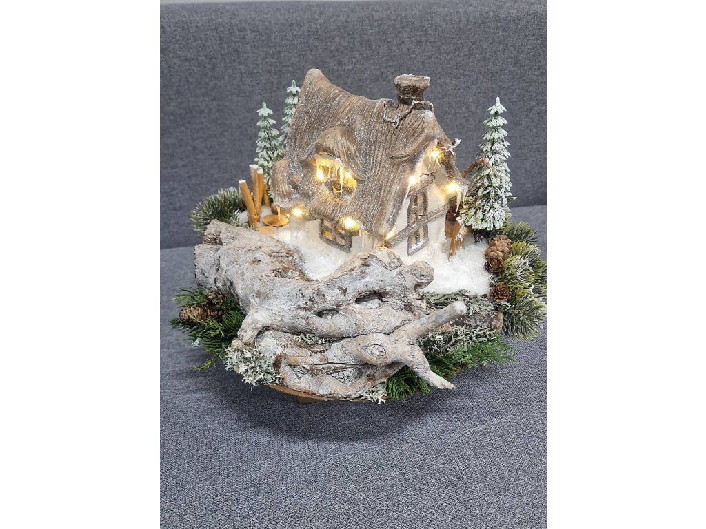 Šišky, drevo, lišajník, domček, stromčeky... všetko je ešte zvlášť lepené, aby dekorácia mohla tešiť po dlhý, dlhý čas.