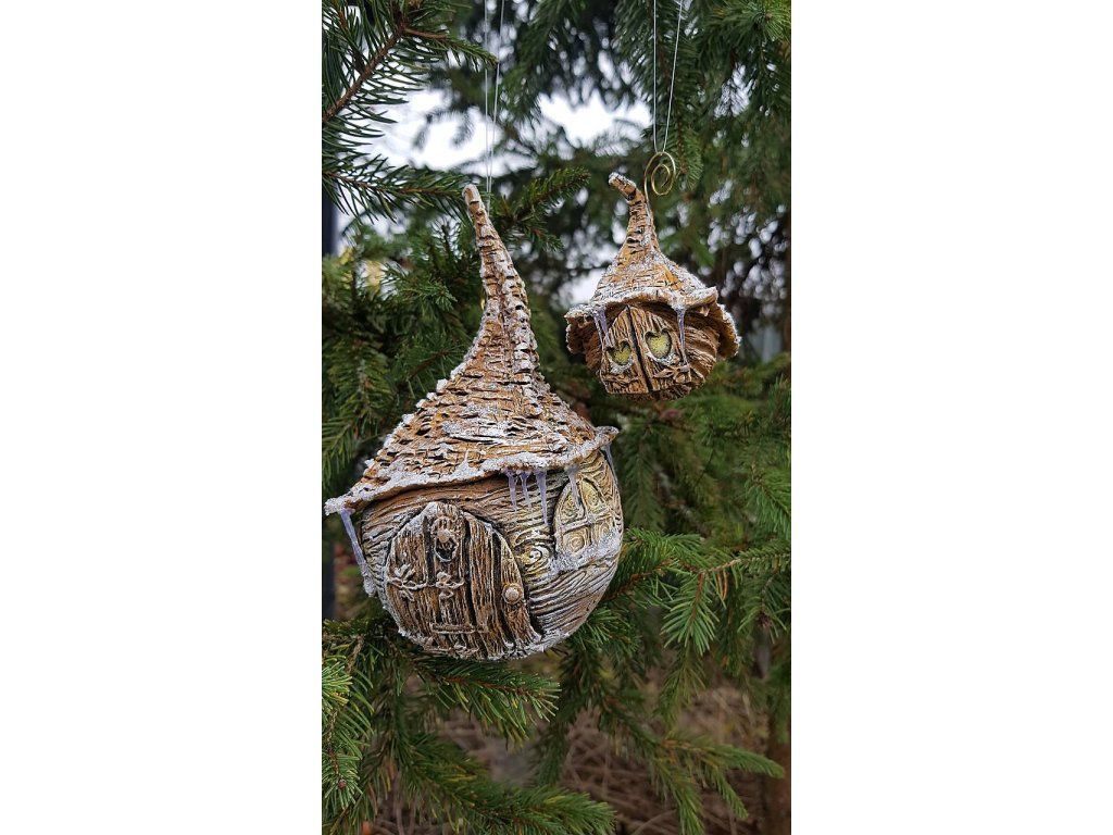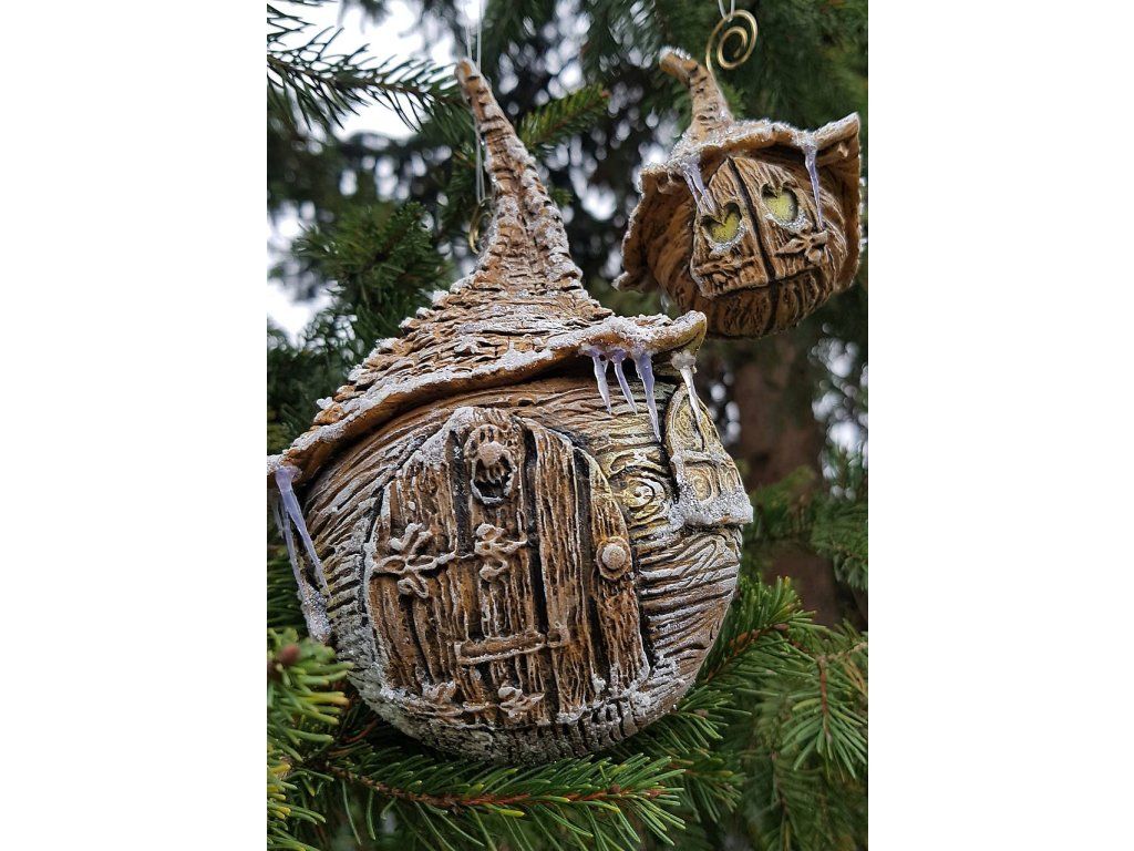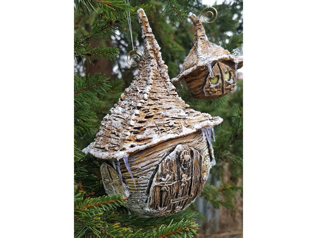 Ručne modelovaná, zasnežená chalúpka na zavesenie na stromček, alebo kdekoľvek, kde by vám robila radosť ❤ ... dekorácia počas celého zimného obdobia :)